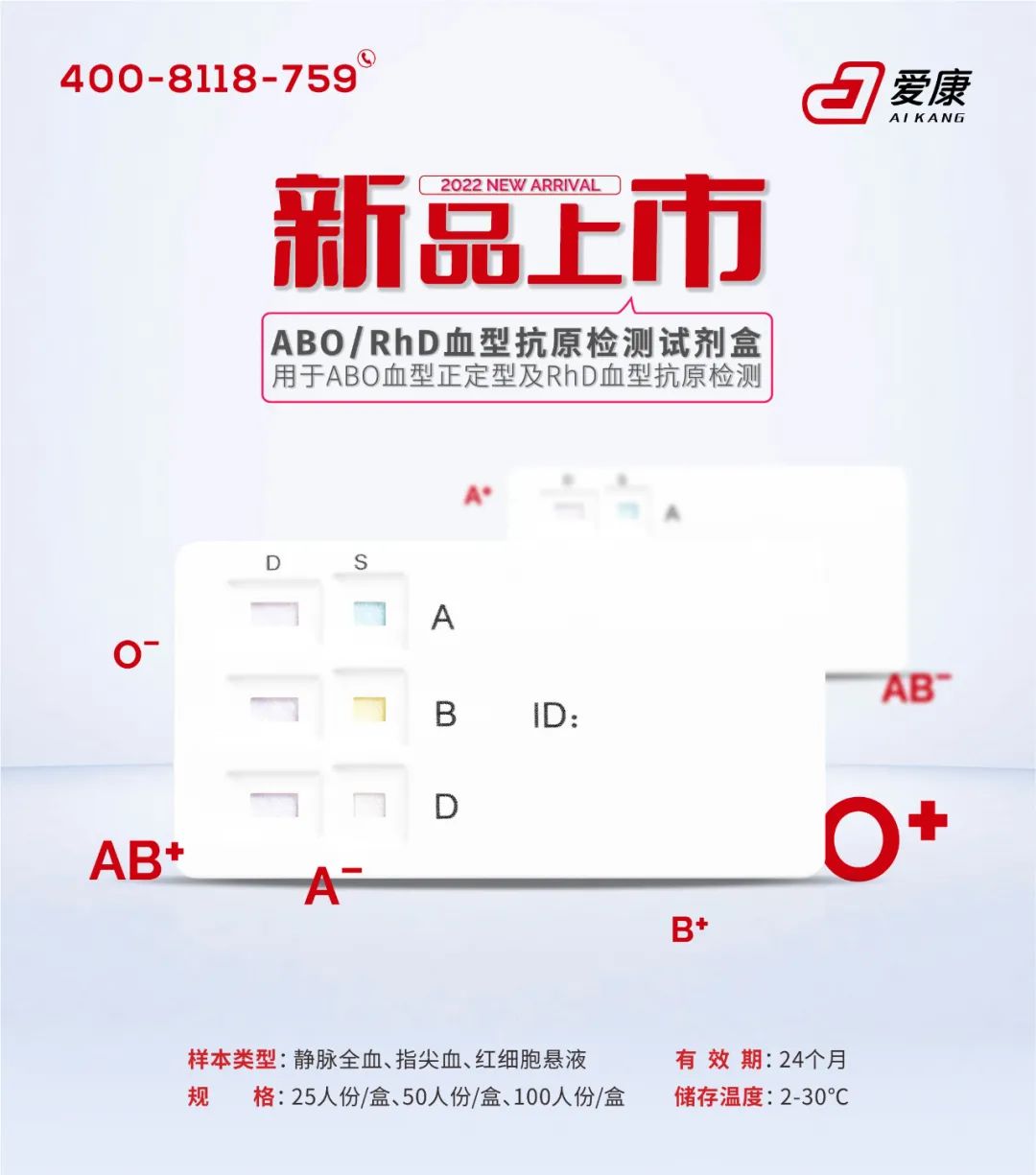 熱烈慶祝深圳愛(ài)康血型產(chǎn)品ABO/RhD血型抗原檢測(cè)試劑盒(固相法)上市!產(chǎn)品具有隨到隨檢、操作簡(jiǎn)便、檢測(cè)快速(1分鐘出結(jié)果)等優(yōu)勢(shì)!