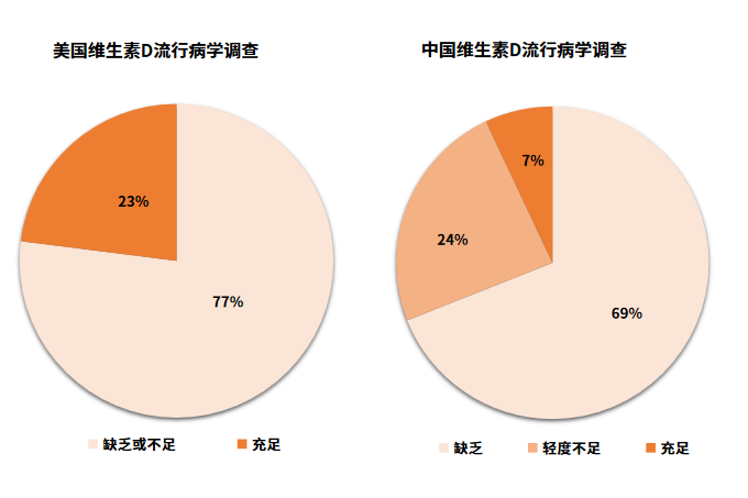 據(jù)統(tǒng)計(jì),美國(guó)維生素D缺乏或不足人群超過總?cè)巳旱?0%;中國(guó)維生素D輕度不足人群占24%,而維生素D缺乏人群高達(dá)69%,且發(fā)病人群年齡、性別、區(qū)域和季節(jié)性存在差異化特點(diǎn),在妊娠期婦女、兒童、青少年及老年人表現(xiàn)尤為嚴(yán)重。