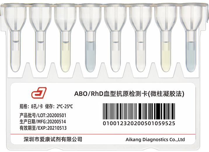 采用微柱凝膠法,8孔卡設(shè)計(jì),適用于進(jìn)行ABO血型正定型及RhD血型抗原的檢測(cè)
