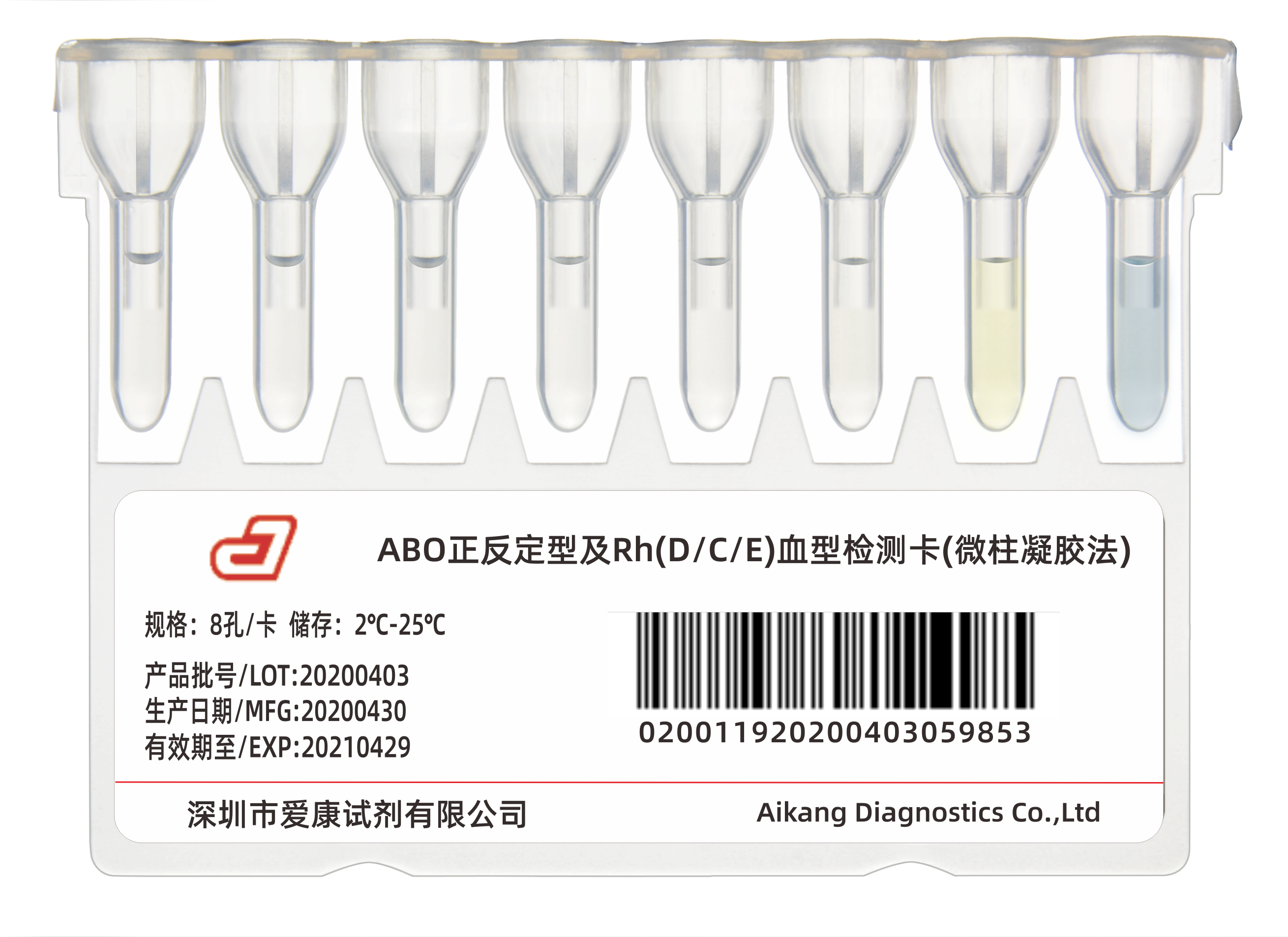 采用微柱凝膠法,8孔卡設(shè)計(jì),適用于ABO血型正反定型及RhD、RhC、RhE血型抗原的檢測(cè)