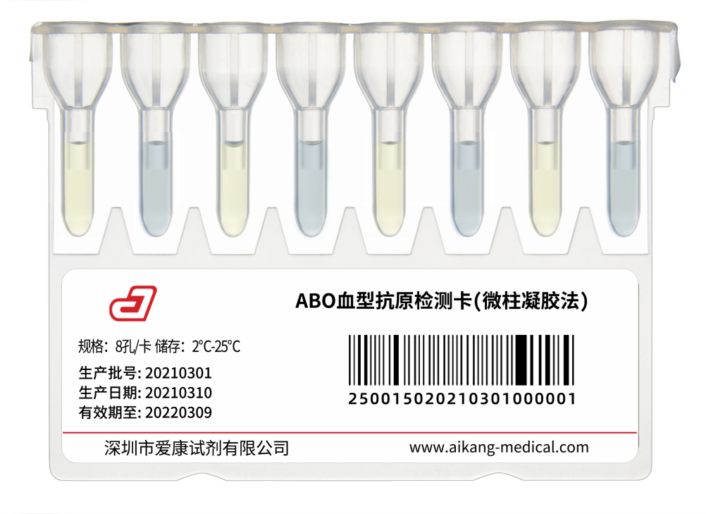 采用微柱凝膠法,8孔卡設(shè)計,適用于ABO血型正定型檢測,可作為血型復(fù)查的常規(guī)檢測卡